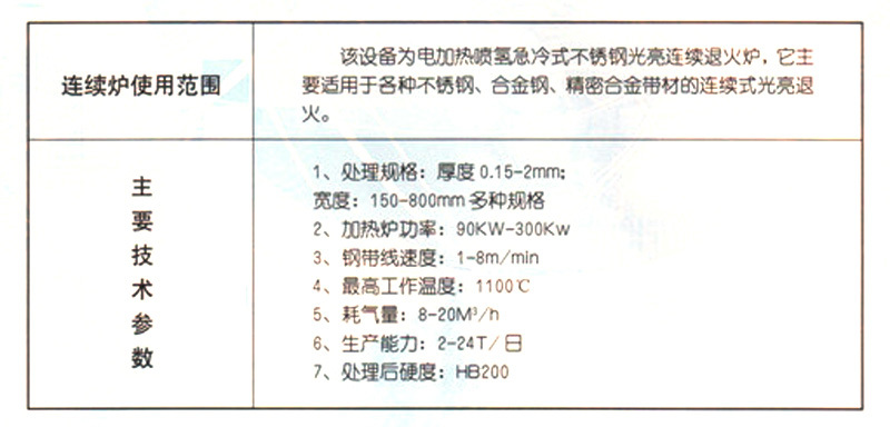 用途和特点: 1.属于连续式作业电阻炉,特别适用于薄不锈钢带冷轧压延行业。供不锈钢带连续光亮退火之用。2.配以不锈钢带的收放卷机构, 收卷钢带不出现跑边现象,能承重2t重工件。 3.配以氨分解保护气氛,设有氨分解冷却空和循环换热装置。保证不锈钢带出炉时达到工艺要求条件,确保退火 后不锈钢表面光亮,无氧化,无划伤现象。 4.与同类产品比较, 具有节能、省气、稳定、高效的特点: |